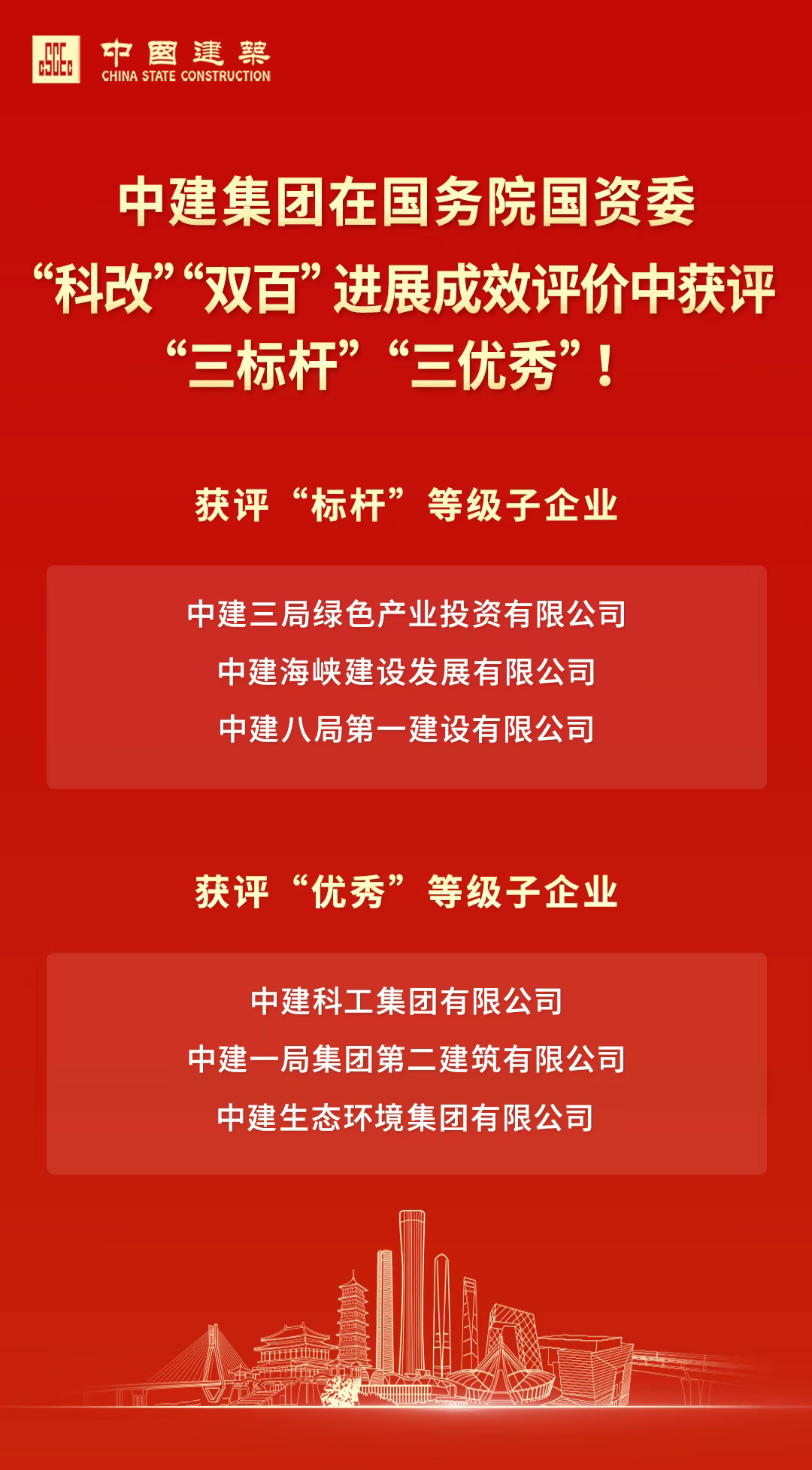 近日,國務(wù)院國資委公布2024年度中央企業(yè)“科改行動”“雙百行動”進(jìn)展成效評價結(jié)果,中建集團(tuán)所屬6戶子企業(yè)成績優(yōu)異,獲評3個“標(biāo)桿”,3個“優(yōu)秀”,中建八局第一建設(shè)有限公司獲評“標(biāo)桿”等級。