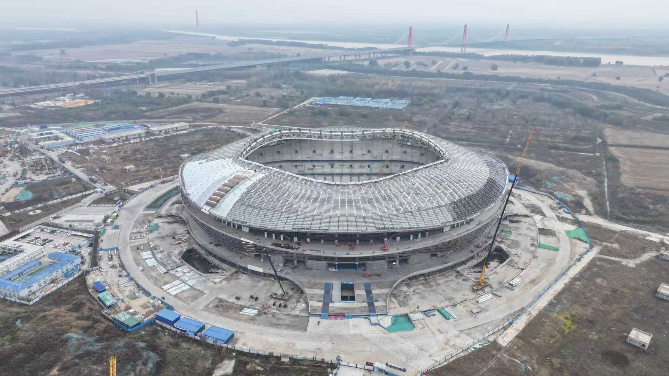 黃河體育中心專業(yè)足球場項目位于濟(jì)南新舊動能轉(zhuǎn)換起步區(qū),總建筑面積19.7萬平方米,采用國際足聯(lián)FIFA最新標(biāo)準(zhǔn) ,是山東省首個6萬座專業(yè)足球場,落實黃河流域生態(tài)保護(hù)與高質(zhì)量發(fā)展戰(zhàn)略重點工程,目前處于索結(jié)構(gòu)施工階段,預(yù)計2026年竣工。