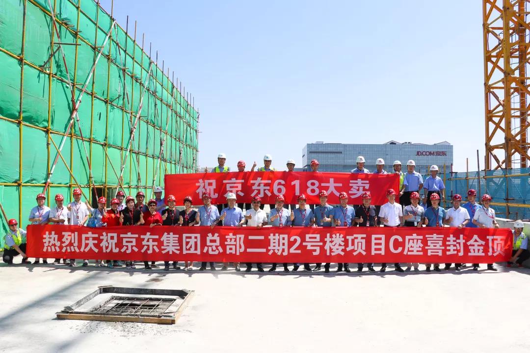 5月29日上午,京東集團總部二期2號樓項目舉辦主體結(jié)構(gòu)封頂儀式。