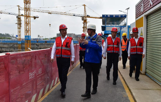 4月17日,局黨委書記、董事長校榮春、局副總經(jīng)理韓興爭、華南分局黨委書記許啟新、華南分局副局長楊深奎、一公司副總經(jīng)理齊朋等一行蒞臨中廣核項(xiàng)目對安全生產(chǎn)、項(xiàng)目履約、創(chuàng)新創(chuàng)效等工作進(jìn)行全方位、多角度突擊指導(dǎo),華南公司黨總支副書記谷力,項(xiàng)目經(jīng)理宮華路、項(xiàng)目總工陳先磊、項(xiàng)目生產(chǎn)經(jīng)理王世杰陪同。