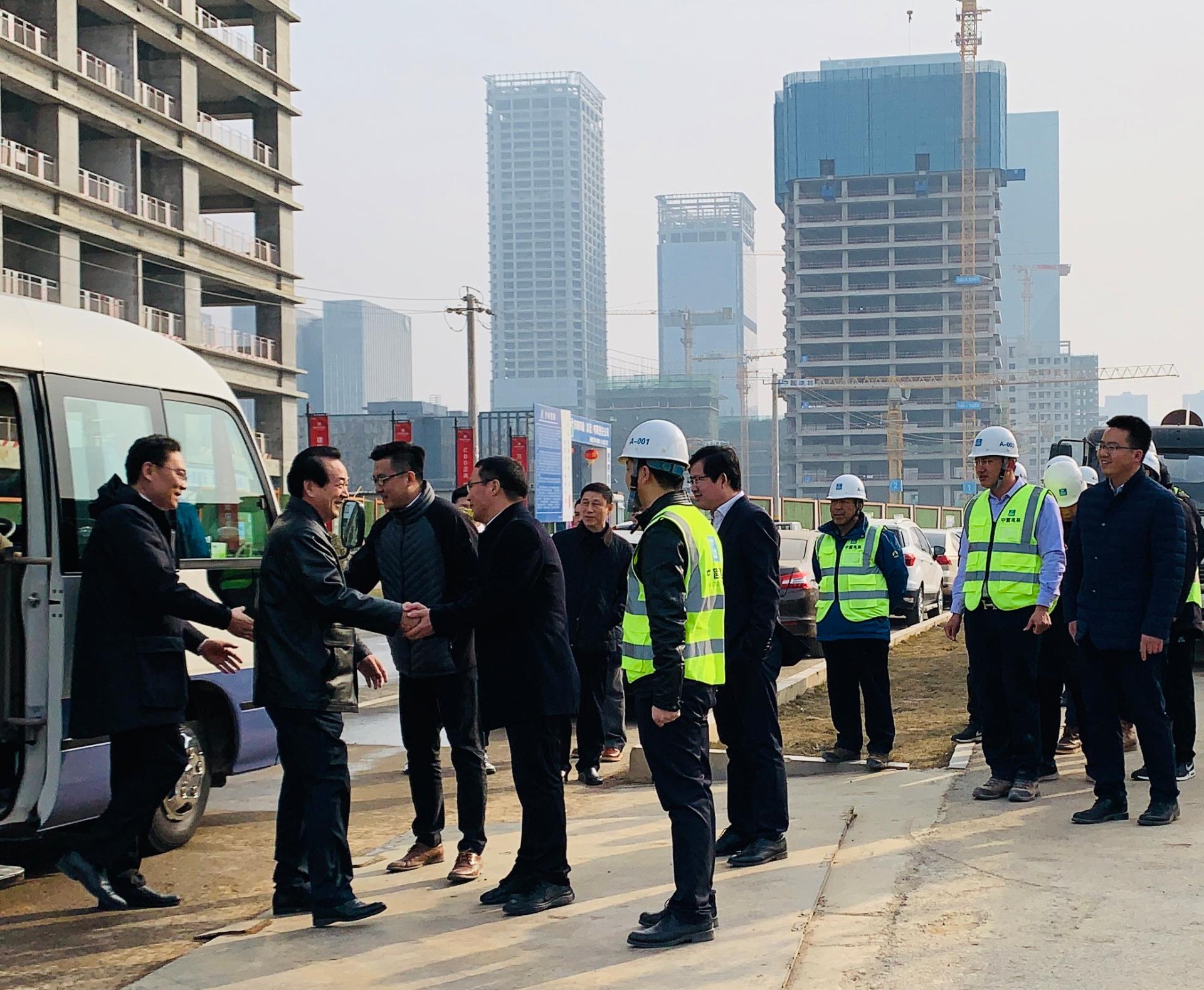 2月11日正月初七,公司黨委書記、董事長董文祥,濟南公司黨委書記畢延寶在平安金融中心項目現(xiàn)場迎接了由濟南市人大常委會主任、黨組書記殷魯謙,市委常委、副市長、市政府黨組副書記徐群,副市長李自軍,歷下區(qū)區(qū)委區(qū)政府主要領(lǐng)導(dǎo),濟南城市建設(shè)投資集團主要領(lǐng)導(dǎo)組成的項目觀摩團,平安地產(chǎn)項目負(fù)責(zé)人王強及項目經(jīng)理趙忠楊陪同檢查。