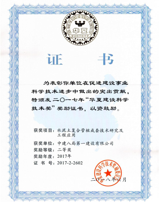 近日,全國建設(shè)科學(xué)技術(shù)領(lǐng)域的最高獎項(xiàng)——華夏建設(shè)科學(xué)技術(shù)獎2017年度獲獎名單揭曉。 公司研發(fā)的《水泥土復(fù)合管樁成套技術(shù)研究及工程應(yīng)用》榮獲二等獎。