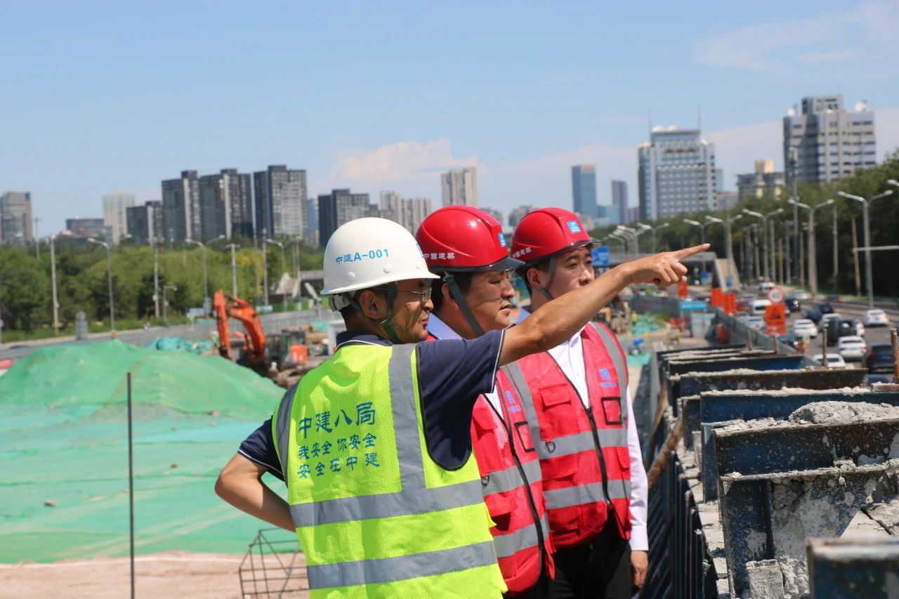 6月25日,中建八局一公司黨委副書(shū)記、總經(jīng)理?;瘧椀奖本┮覉@北街道路工程1#標(biāo)段開(kāi)展“四不兩直”安全帶班檢查。