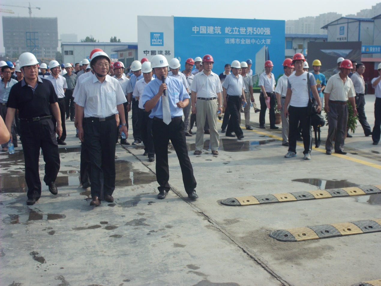參加本次觀摩會的有山東省安全監(jiān)督管理站站長欒啟亭、淄博市住房建筑監(jiān)督局副局長劉超軍、淄博市環(huán)保局副局長李學太、淄博市質(zhì)量安全監(jiān)督站站長宋超等山東省、淄博市各區(qū)縣住建局質(zhì)量安全工作分管局長、質(zhì)量、安全監(jiān)督機構負責人,以及淄博市直監(jiān)督工程建設單位項目負責人、監(jiān)理單位主要負責人及項目總監(jiān)、施工單位主要負責人及項目經(jīng)理;淄博市市住建局、市質(zhì)安站相關工作人員。山東分局副局長宋疆增、公司施工管理部部長梁本乾等陪同參觀。
