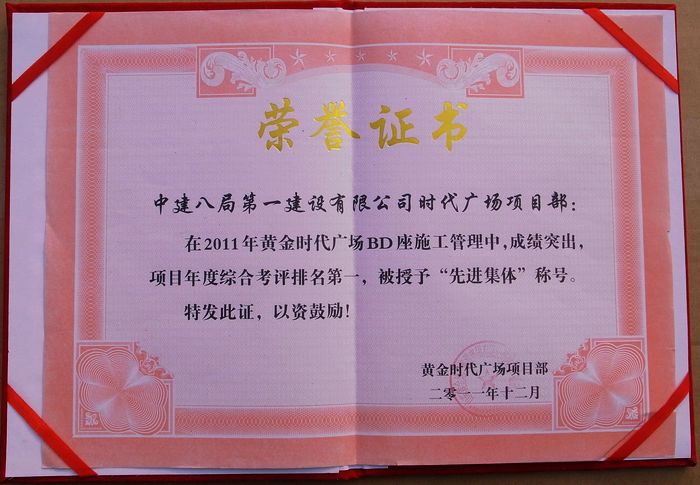 據(jù)悉,黃金時代廣場項目經(jīng)理部積極響應(yīng)局號召,深入落實準(zhǔn)軍事化管理相關(guān)精神,以精細(xì)管理為主線,加強(qiáng)技術(shù)質(zhì)量管理,加大開源節(jié)流力度,在質(zhì)量、工期、安全等各個方面取得了較好的成績。先后榮獲局“準(zhǔn)軍事化管理示范項目”、“山東省安全文明示范工地”、“國家AAA級安全文明誠信工地”及“總公司2010年度CI創(chuàng)優(yōu)金獎”等榮譽稱號。