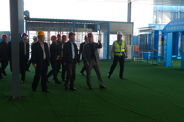 在項目相關(guān)人員的陪同和解說下,宋錫慶一行先后調(diào)研了項目安全體驗區(qū)、綠色施工體驗區(qū)、項目科技館及塔樓A清水區(qū),宋錫慶對項目創(chuàng)建智慧工地的理念贊不絕口,并對清水區(qū)的施工品質(zhì)表示認可,他提出,希望公司借助清水契機,做好山東清水第一品牌。