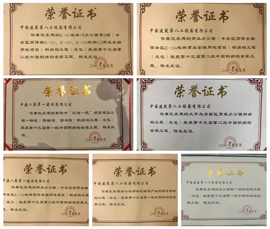 公司擁有房屋建筑工程施工總承包特級(jí)資質(zhì)、市政公用工程施工總承包特級(jí)資質(zhì)、建筑行業(yè)(建筑工程、人防工程)設(shè)計(jì)甲級(jí)資質(zhì)、市政行業(yè)設(shè)計(jì)甲級(jí)資質(zhì)、鋼結(jié)構(gòu)總承包一級(jí)資質(zhì)等。榮譽(yù)見證實(shí)力,一次斬獲七項(xiàng)全國鋼結(jié)構(gòu)最高獎(jiǎng)。再次證明了公司在鋼結(jié)構(gòu)領(lǐng)域優(yōu)秀的施工和管理能力。(李賀雷)