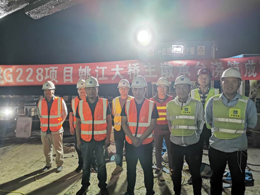 姚江大橋南岸主墩承臺澆筑現(xiàn)場合影