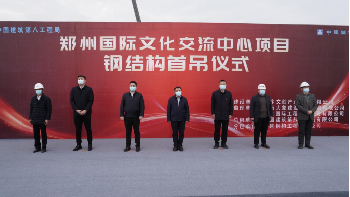 中建八一鄭州國際文化交流中心項(xiàng)目迎來鋼結(jié)構(gòu)首吊