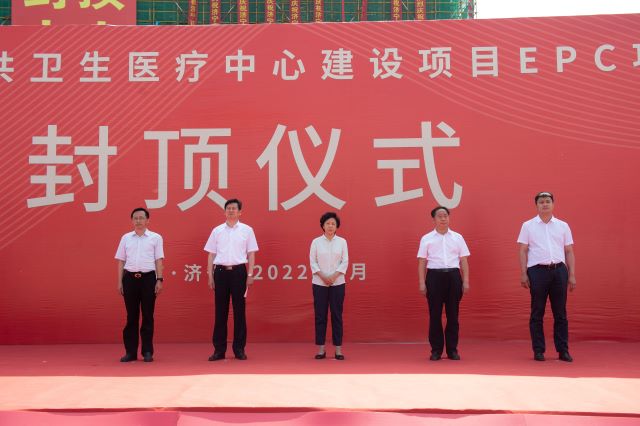 2022年5月29日上午,濟寧市公共衛(wèi)生醫(yī)療中心項目舉行封頂儀式,濟寧市衛(wèi)健委黨委書記、主任魯先靈,濟寧市任城區(qū)副區(qū)長孔繁華,濟寧市公共衛(wèi)生醫(yī)療中心黨委書記侯春生,濟寧市發(fā)改委二級調(diào)研員袁文霞,市都市區(qū)一體化指揮部四級調(diào)研員孫德化,濟寧市第一人民醫(yī)院黨委副書記、院長鐘海濤,濟寧衛(wèi)校黨委書記、校長駱榮暉、濟寧市中醫(yī)醫(yī)院院長王祥生,中建八局第一建設(shè)有限公司魯南公司經(jīng)理李輝,山東班锘工程項目管理有限公司總經(jīng)理張書明等出席本次封頂儀式。