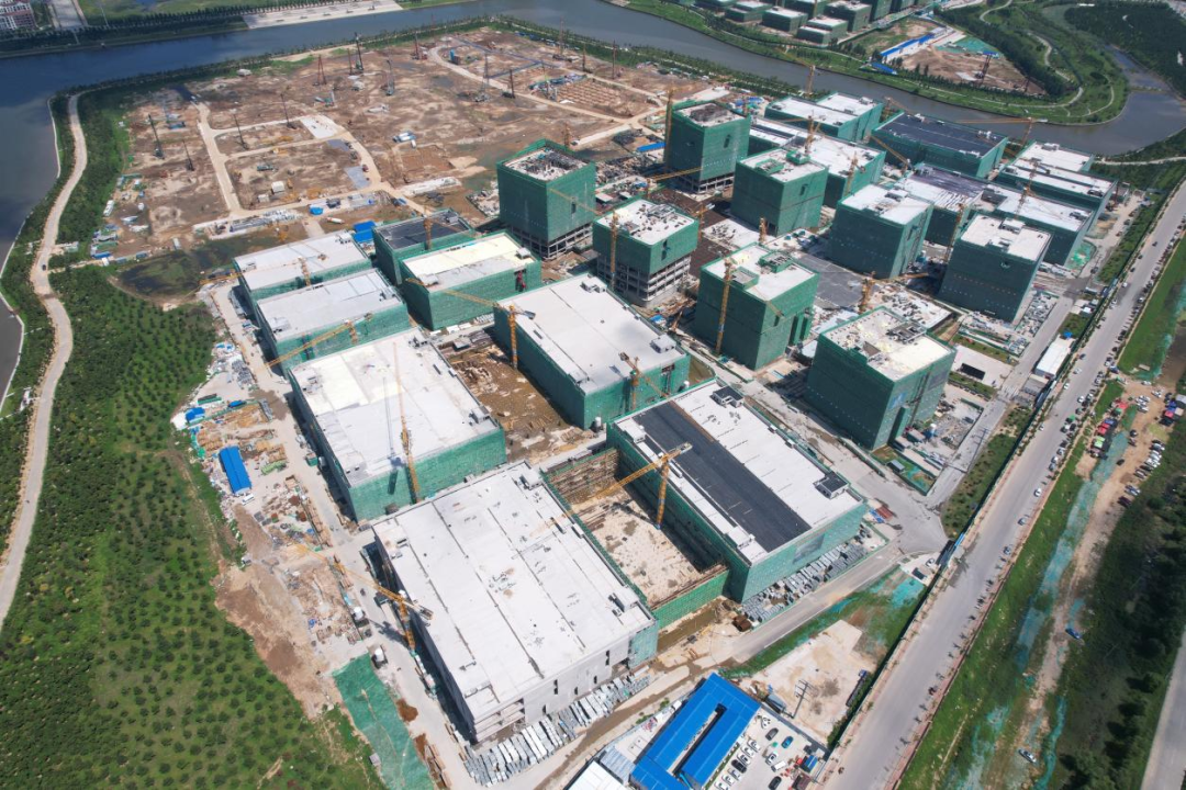 二、大。項目體量大,占地面積570畝,總建筑面積65萬平方米,共有22棟單體;建設場面大,大干快上的高峰期,2500余名建設者同場鏖戰(zhàn),20余臺塔吊同步工作,50余臺機械轟隆作響;帶動經(jīng)濟作用大,園區(qū)建成后兩年內(nèi),預計年產(chǎn)值180億元,年利稅36億元,新增就業(yè)5千人。