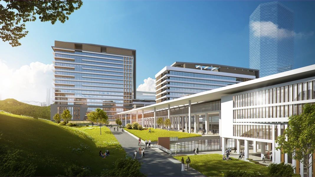 濟南市中心醫(yī)院(東院區(qū))位于濟南高新區(qū)共分為兩期建設(shè),是濟南市衛(wèi)生健康行業(yè)貫徹“東強”戰(zhàn)略的重要落子,將滿足濟南東部地區(qū)40萬居民醫(yī)療衛(wèi)生保健需求。其中,一期工程已于2022年9月28日正式啟用,二期項目建筑面積20.58萬平方米,建設(shè)內(nèi)容包括辦公綜合樓、門診醫(yī)技綜合樓及2號病房樓,規(guī)劃床位數(shù)1065張,設(shè)有普通手術(shù)室28間、機器人手術(shù)室2間、新增機動車停車位1660個,項目當(dāng)前處于主體施工階段,預(yù)計2025年竣工。