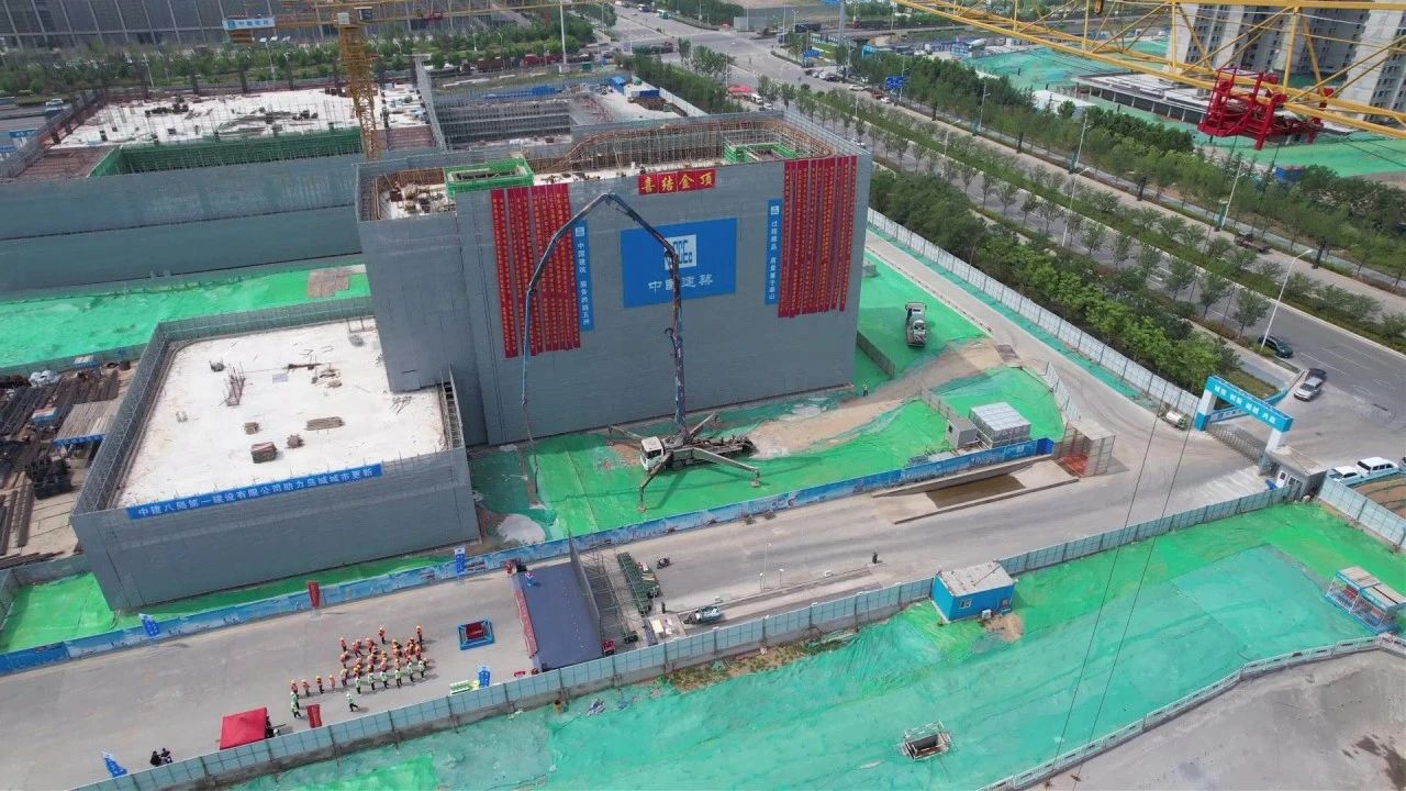 項目團隊特邀地基固化專家團隊多次采樣、現(xiàn)場實驗、反復(fù)論證,最終采用高壓旋噴樁施工技術(shù),通過改變原地層結(jié)構(gòu)和組成,灌入水泥漿或復(fù)合漿形成凝結(jié)體,以達到加固地基的作用,能夠從根本上解決土體變形問題。同時分析對比2#綜合樓施工內(nèi)容,對基坑支護方式進行設(shè)計優(yōu)化,提前施工試樁以及地梁層反向支模等措施,50天實現(xiàn)首棟主體封頂、210天實現(xiàn)項目全面封頂,預(yù)計2024年8月可提前竣工交付。