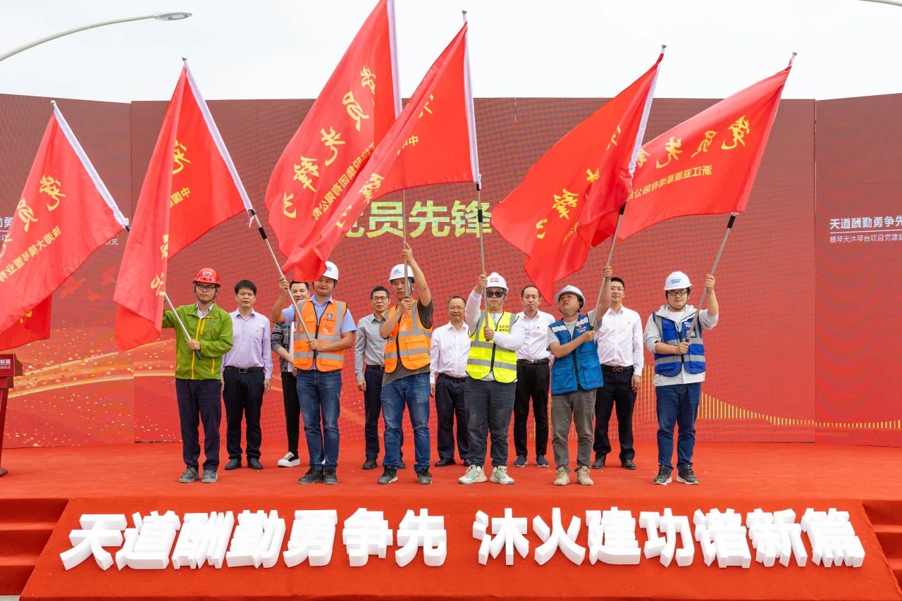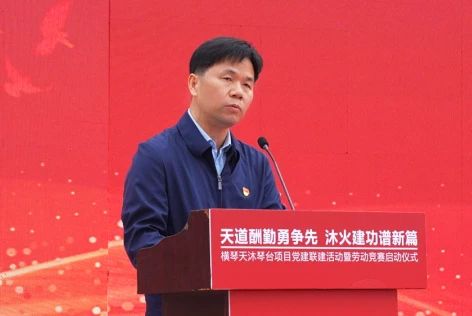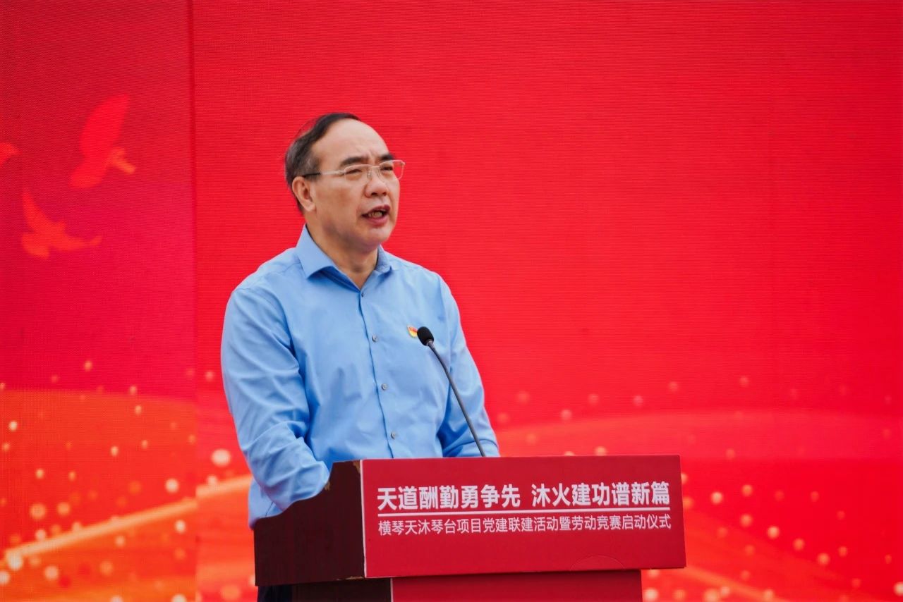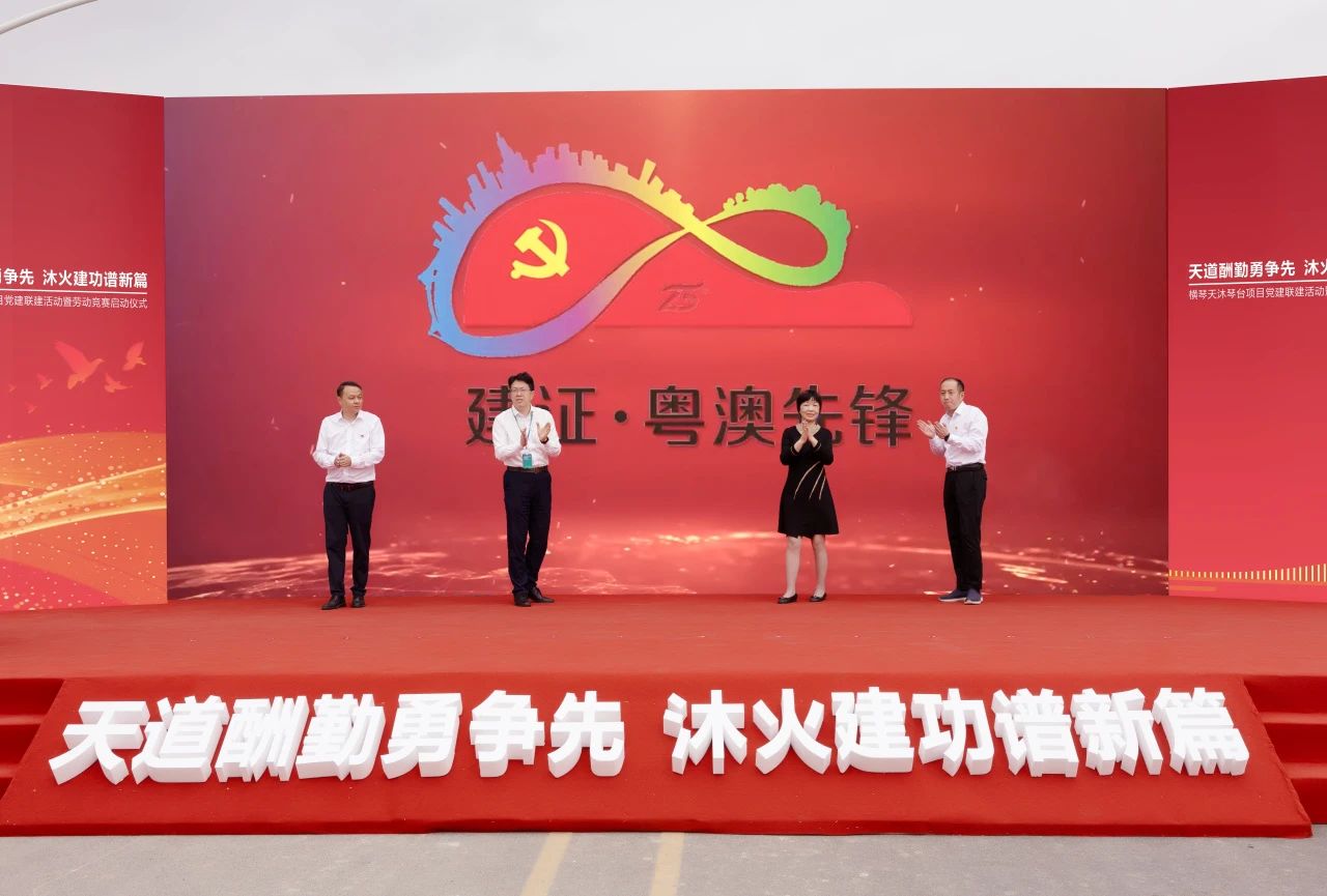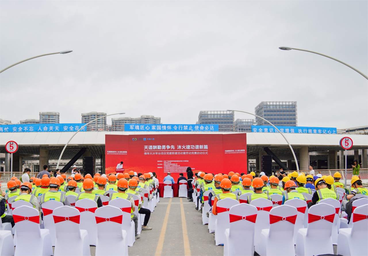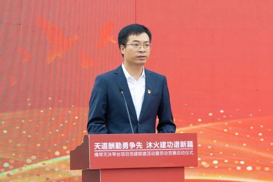 3月28日,橫琴天沐琴臺項目舉辦黨建聯(lián)建暨勞動競賽啟動儀式,按下項目建設(shè)“快進鍵”。廣東省委橫琴工委黨建工作處處長童鐵丁,珠海市總工會黨組書記、常務(wù)副主席唐尚洪,橫琴粵澳深度合作區(qū)行政事務(wù)局副局長張文驥,城市規(guī)劃和建設(shè)局住房保障處處長鄭慧仙,珠海大橫琴集團有限公司副總經(jīng)理祝杰,珠海大橫琴置業(yè)有限公司黨總支書記、董事長唐文彬,中建八局華南分局黨委書記郭青松,中建八局一公司華南公司執(zhí)行總經(jīng)理、工會主席張志剛,以及各參建單位代表、工友代表參加活動。