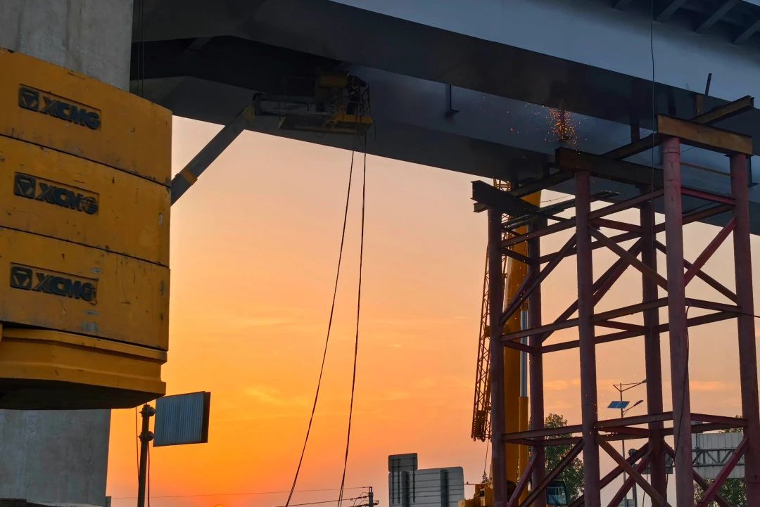 6月26日,中建八局承建的國內(nèi)首條“6改12”高速公路京臺高速齊濟(jì)段改擴建工程,12根鋼蓋梁和2處鋼箱梁經(jīng)過起吊、位移、轉(zhuǎn)體、微調(diào)、安裝等有序作業(yè)流程,實現(xiàn)精準(zhǔn)落位,標(biāo)志著項目正式進(jìn)入上部結(jié)構(gòu)施工階段,為后續(xù)鋼混組合梁橫向滑移打下了堅實基礎(chǔ)。