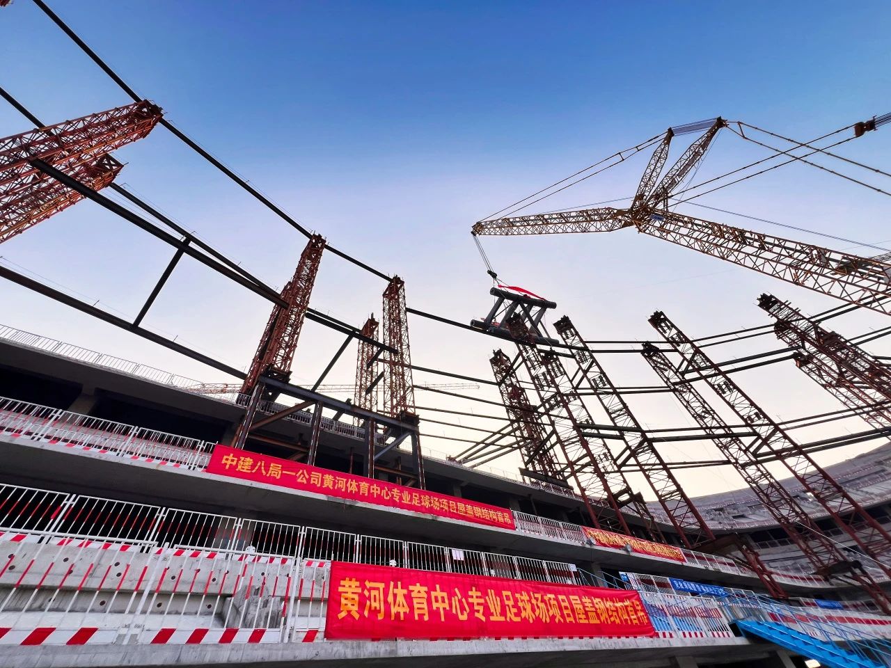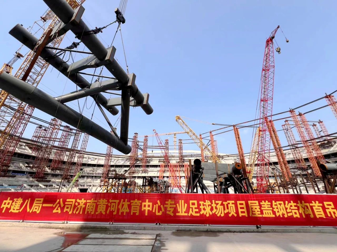 山東首個6萬座專業(yè)足球場完成屋蓋鋼結(jié)構(gòu)首吊