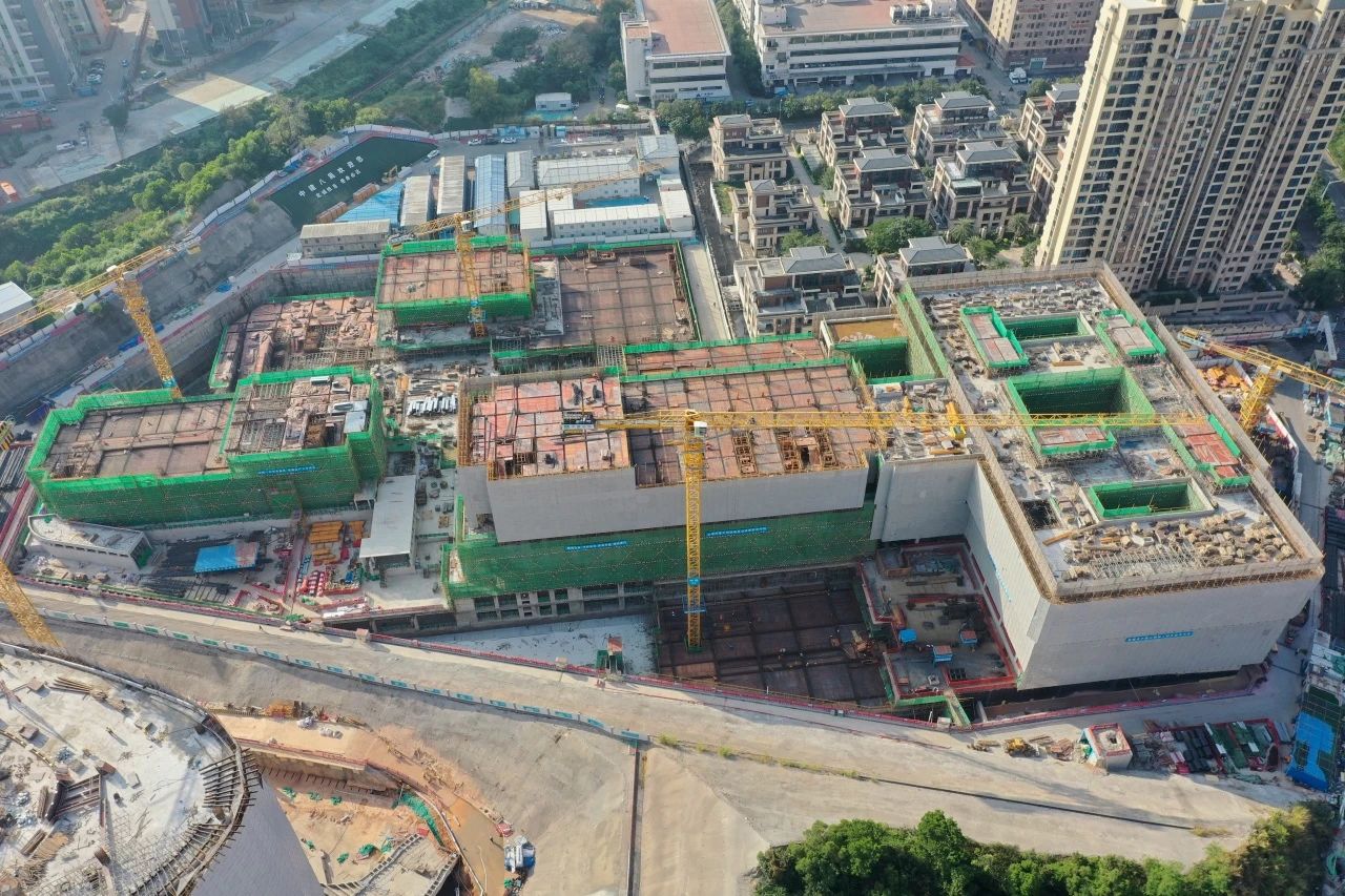 項(xiàng)目于2021年6月正式開工,由于依山而建,面臨土石方開挖體量大、支護(hù)難度高等困難,項(xiàng)目團(tuán)隊(duì)優(yōu)化施工方案,采用靜爆破除+開山鋸切割等方式,在大幅降低現(xiàn)場(chǎng)噪音的同時(shí)提高石方破除效率。2022年1月,完成土石方開挖,2023年10月,地下室沖出正負(fù)零,提前9個(gè)月實(shí)現(xiàn)主體結(jié)構(gòu)封頂,目前項(xiàng)目已進(jìn)入主體結(jié)構(gòu)及裝飾裝修階段,預(yù)計(jì)2026年9月竣工交付。