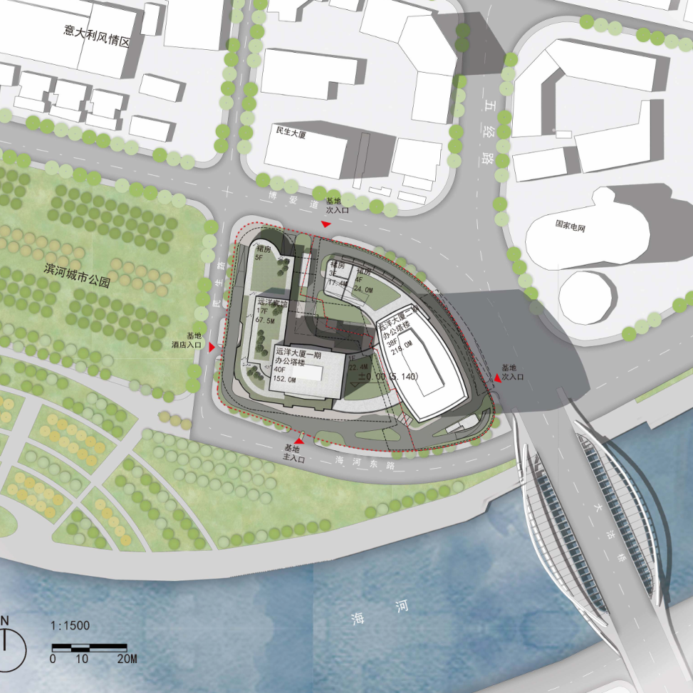 項目地處天津市區(qū)核心位置,南臨海河,東臨大沽橋毗鄰天津站,地理位置優(yōu)越,總建筑面積約10.79萬平方米,建設(shè)高度218米,分為地下5層,地上38層,項目建成后將成為全市港產(chǎn)城融合發(fā)展的重要載體,海河沿線重要的地標建筑,為推動天津市港產(chǎn)城融合發(fā)展賦能聚力。