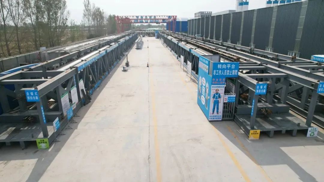 項(xiàng)目在山東省內(nèi)高速公路項(xiàng)目建設(shè)中首次應(yīng)用折線法先張工字梁針,對黃河特大橋北側(cè)堤外引橋592片先張法工字梁施工;項(xiàng)目聯(lián)合山東省交通規(guī)劃設(shè)計(jì)院共同打造桁架自錨式整體張拉臺(tái)座,一個(gè)臺(tái)座可同時(shí)生產(chǎn)三片梁,具有通用性強(qiáng)、周轉(zhuǎn)率高、地基承載要求低、制梁效率高且質(zhì)量可控等優(yōu)點(diǎn)。