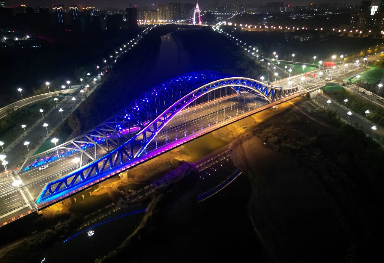聊城黑龍江路跨徒駭河大橋全長860米,主橋長252米,橋?qū)?6米,采用雙向八車道標(biāo)準(zhǔn),是魯西地區(qū)跨度最大的拱橋,也是全國首座采用UHPC橋面系的中承式鋼結(jié)構(gòu)桁架拱橋,被譽(yù)為“魯西第一拱”。