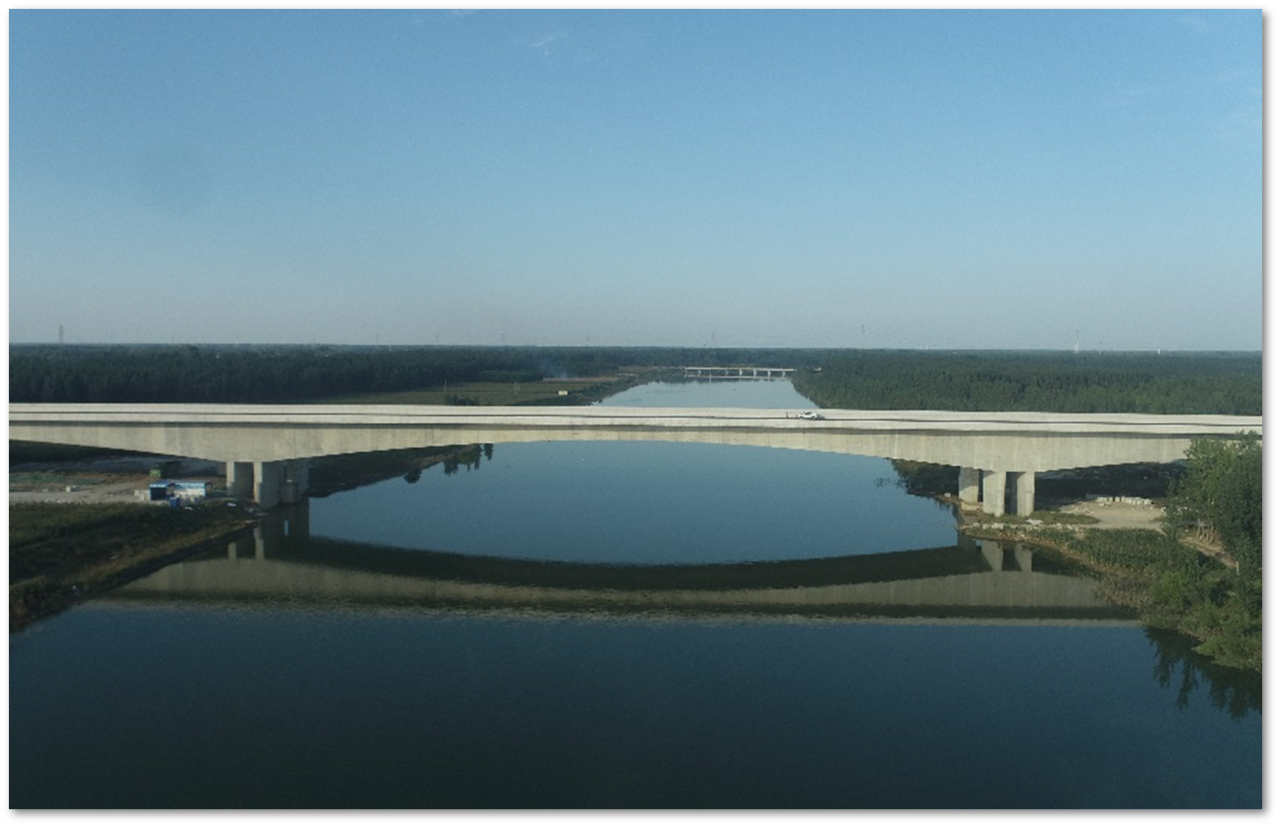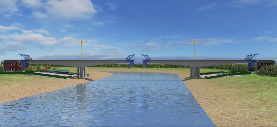 徒駭河特大橋是項目施工的重難點,全長1248.5米,共9聯(lián),單幅橋?qū)?6.5米,主跨長358.5米,最大跨徑165米,主橋采用單箱單室變截面預應力混凝土連續(xù)梁結(jié)構(gòu)形式,是徒駭河跨徑最大連續(xù)剛構(gòu)現(xiàn)澆梁。