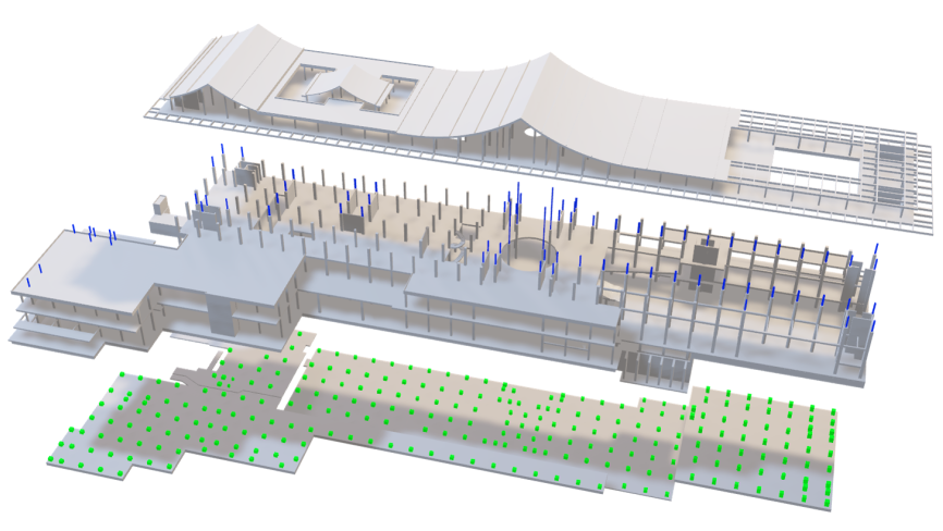 為承載“百年故宮”的重要使命,項目以“穩(wěn)”字為建設理念,在2.73萬平方米的地基內(nèi)澆筑了1600余根灌注樁,確保建筑地基堅實穩(wěn)固。項目利用有限元分析軟件建立復合減隔震技術耦合分析模型,在建筑基礎與上部結構之間巧妙設置325個大型隔震支座,配合勁性結構、粘滯阻尼器以及抗拉裝置的多重組合,可隔離80%-90%的地震能量,確保文物在安全環(huán)境中妥善保存。