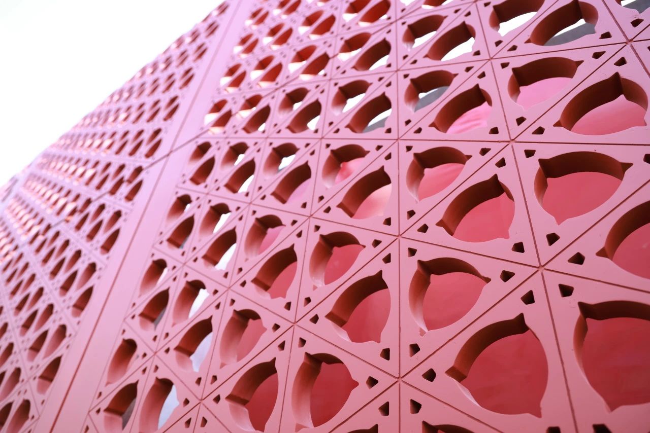 為更好展現(xiàn)故宮傳統(tǒng)文化元素,項目采用UHPC超高性能混凝土幕墻、金色鋁合金圓管和鋁板屋面,集高強度、高韌性、高耐久性于一身,形成對UHPC飾面故宮紅防褪色技術,還原金頂中正、紅墻連續(xù)的“故宮味道”。
