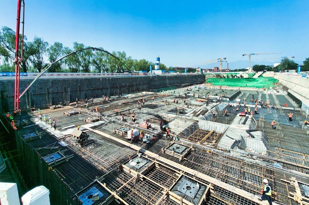 項目踐行“掛圖作戰(zhàn)、適時生產(chǎn)”理念,制定“總、年、月、周”四級計劃,大宗材料進場、大方量砼澆筑等重要工作節(jié)點均提前策劃,落實全員各區(qū)域網(wǎng)格化管理,現(xiàn)場同時作業(yè)人員高峰時超800人,保障結構沖出正負零、主體封頂?shù)汝P鍵節(jié)點順利完成。