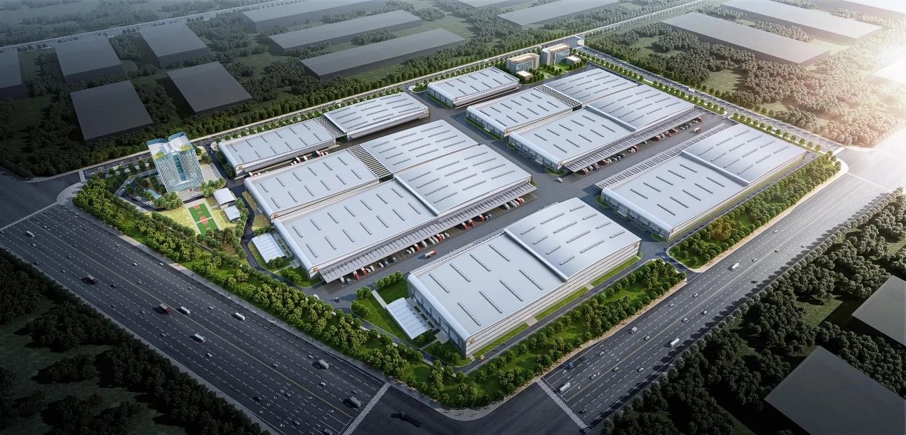 項目建設4棟單體廠房,最大單層面積1.9萬平方米,共設有21個5噸月臺升降機,滿足教輔教材等貨物儲存、分揀需求,廠房屋面安裝大面積光伏系統(tǒng)可實現(xiàn)部分園區(qū)設施、周邊交通運輸及公共設施“零碳”供電。