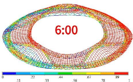 為消除日照非均勻輻射產(chǎn)生的鋼結(jié)構(gòu)定位節(jié)點偏差,項目開發(fā)“基于分步建模的施工過程溫度效應(yīng)分析系統(tǒng)”,分析精度較傳統(tǒng)技術(shù)提高了2.7倍,有效應(yīng)對早晚溫差導致的定位節(jié)點偏差,為屋蓋鋼結(jié)構(gòu)精準卸載奠定堅實基礎(chǔ)。