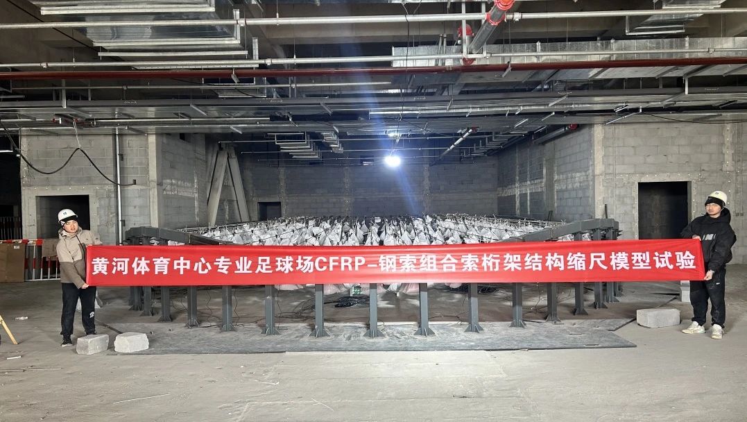 項目博士工作站聯(lián)合天津大學,設(shè)計國內(nèi)首個縮尺比例為1/15的CFRP索桁架整體模型,開展靜力加載、張拉成型與斷索測試,3大力學試驗解決索桁架張拉成型過程中的強非線性、大變形技術(shù)難題,確保最終張拉型態(tài)符合設(shè)計要求,為下步施工奠定理論基礎(chǔ)。