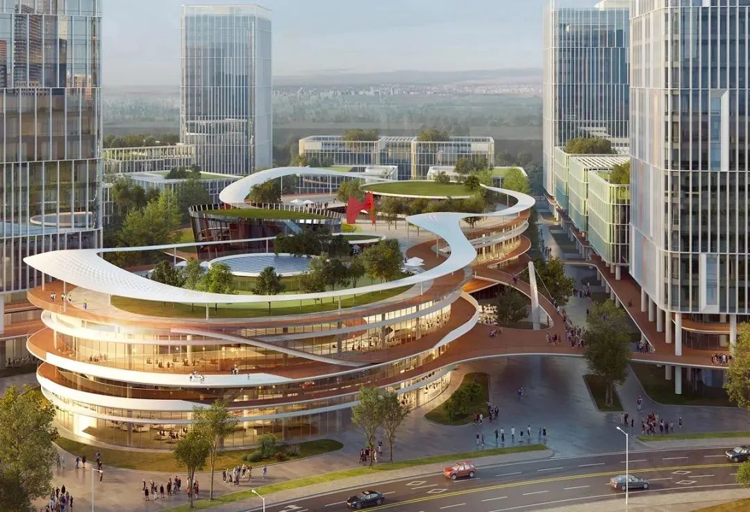 項目作為整體擴區(qū)的首發(fā)地塊,以“云端綠谷”為核心設計理念,將“云”的形態(tài)融入建筑布局,創(chuàng)意打造立體“共享云臺”,將原本高密度的園區(qū)環(huán)境轉變?yōu)楦呋盍Φ牧Ⅲw開放空間,打造高效舒適的花園式研發(fā)辦公環(huán)境。