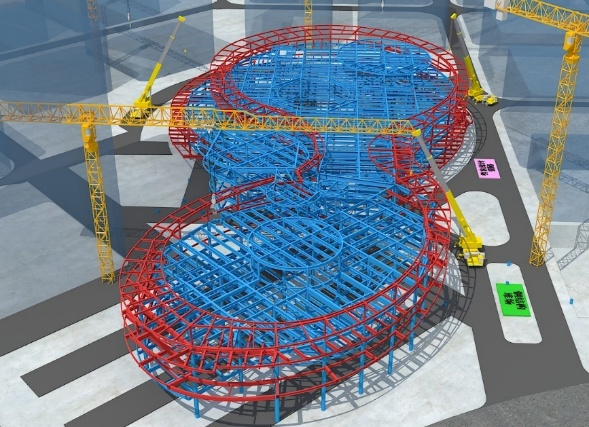 “共享云臺”以流暢多變的鋼結構造型將“云”的形態(tài)具象為“共享”平臺,為了完美演繹雙曲飄帶造型屋頂,項目應用三維激光掃描+BIM建模技術,將施工誤差控制在2毫米以內(nèi)。