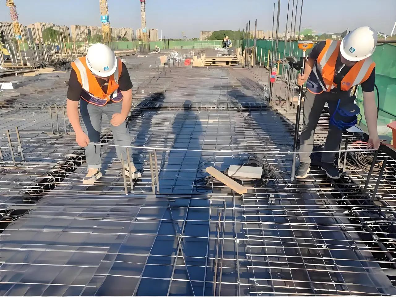 項目在主體結(jié)構(gòu)施工階段,創(chuàng)新采用RTK實時動態(tài)定位技術(shù),懸挑架所有埋件位置支持一鍵定位,20分鐘可完成3000平方米埋件位置復(fù)核,采用方圓扣龍骨模板體系技術(shù),有效提高模板垂直度、平整度與施工效率。