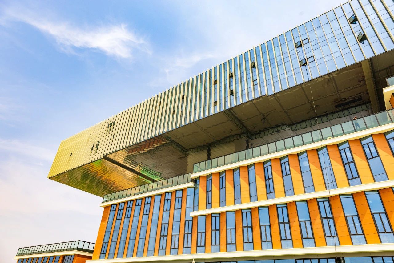 項(xiàng)目由6根立柱式核心筒及大量框架托舉起頂部的“鋼鐵頂冠”,呈現(xiàn)出“平行世界”的設(shè)計(jì)理念,其中大噸位、大跨度整體提升鋼連廊最大懸挑44米,整體提升高度30米,是濟(jì)南市起步區(qū)首個(gè)跨度超90米的高空鋼桁架結(jié)構(gòu)。