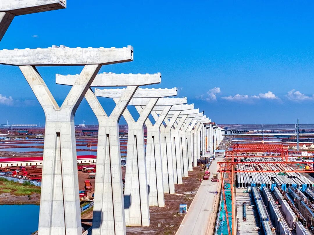 測(cè)量期間,項(xiàng)目建設(shè)者參考衛(wèi)星地圖,背著充氣皮筏和測(cè)量設(shè)備,步行穿過萬(wàn)畝灘涂,實(shí)現(xiàn)各測(cè)量點(diǎn)精準(zhǔn)定位。制定“臨時(shí)圍堰+永久圍堰”施工方案,隔離施工區(qū)域海水開展路基施工,將永久圍堰作為臨時(shí)道路,高峰時(shí)上百輛工程機(jī)械“入海作業(yè)”,按照“先成段、再成線、連成片”的方式,2個(gè)月實(shí)現(xiàn)1.6萬(wàn)米圍堰貫通。