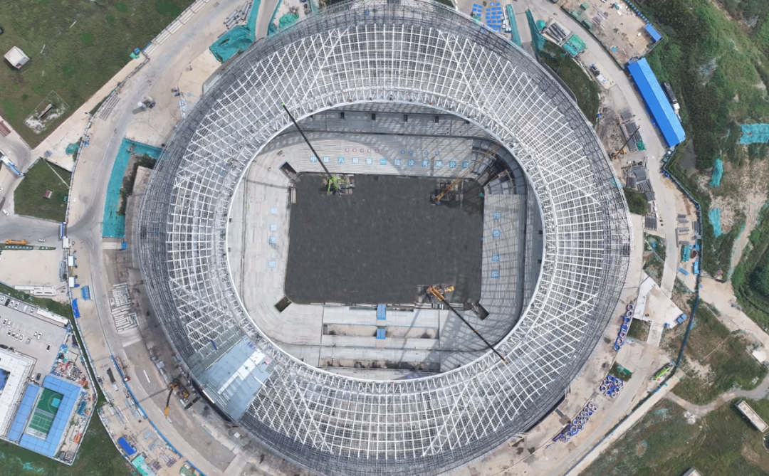 同時,項目正全力推進(jìn)金屬屋面、防水層、隔音層等部位施工,即將進(jìn)入難度較大的膜結(jié)構(gòu)施工階段。屋蓋內(nèi)環(huán)將打造一圈 “透明屏障”,為足球場提供更優(yōu)的光照條件,進(jìn)一步提升觀賽體驗。