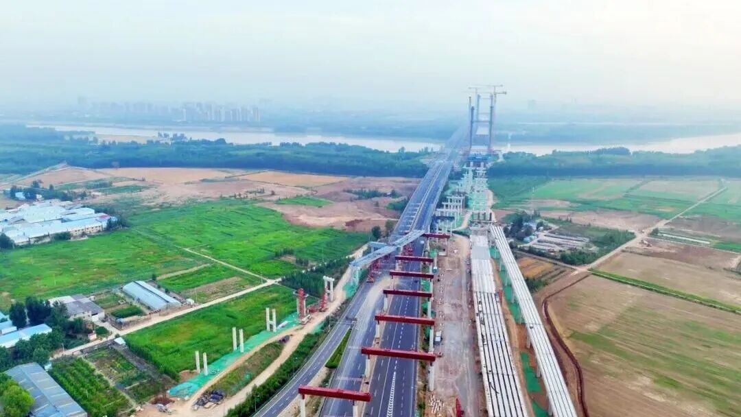 項目跨越多條鐵路、地鐵、國省道及河流,橋梁結(jié)構(gòu)占比高達75.5%。項目在國內(nèi)高速公路建設(shè)中首次應用大節(jié)段智能懸灌造橋機,可沿梁體隨澆筑進度同步移動,最大澆筑節(jié)段長度提升至傳統(tǒng)工藝的3倍,縮短澆筑工期約40%。