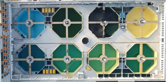 由于黃唇魚皮膚薄且敏感,對(duì)水環(huán)境和池體條件要求嚴(yán)苛,養(yǎng)殖池體采用八邊形圓弧角結(jié)構(gòu),最大限度避免魚體碰撞損傷。項(xiàng)目定制一次性擠壓成型的整體型材模板及支撐、破解異形結(jié)構(gòu)難題,25 天高效完成 8 口共 3.2 萬立方米超大養(yǎng)殖池的深化設(shè)計(jì)與現(xiàn)場(chǎng)安裝。