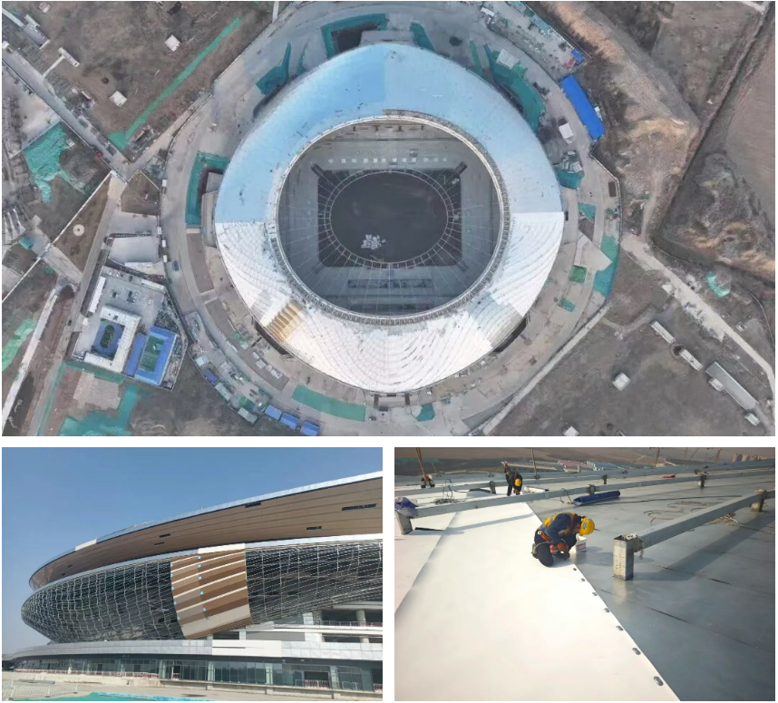 在濟(jì)南,黃河體育中心專業(yè)足球場(chǎng)項(xiàng)目已進(jìn)入履約攻堅(jiān)階段,屋面三萬(wàn)多塊金屬異形蜂窩鋁板全部以三維掃描 + 全站儀控制點(diǎn)位安裝,確??p隙順直、造型流暢。