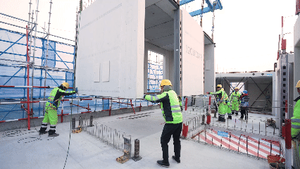 施工全程“免模少撐”、無(wú)大量交叉作業(yè),僅需15名專(zhuān)業(yè)工人即可完成吊裝、拼接、整體澆筑等核心工序,整體工期節(jié)約50%。創(chuàng)新研發(fā)“可拆卸臨邊防護(hù)裝置”,實(shí)現(xiàn)快速防護(hù)、快速拆除,讓施工過(guò)程更加安全。