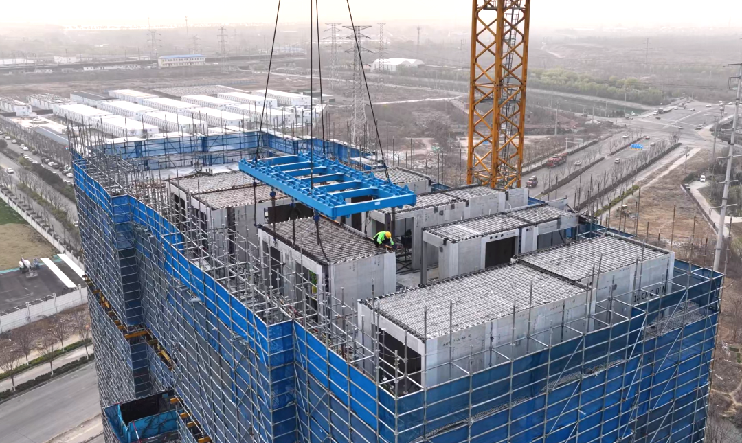 在施工端,模塊出廠后綁定專(zhuān)屬溯源編碼,實(shí)現(xiàn)“到場(chǎng)即吊、無(wú)縫銜接”。項(xiàng)目采用自主研發(fā)的智能吊具,單個(gè)模塊吊裝時(shí)間從傳統(tǒng)方法的40分鐘壓縮至5分鐘,插筋與芯柱對(duì)接精度控制在5毫米以?xún)?nèi)。