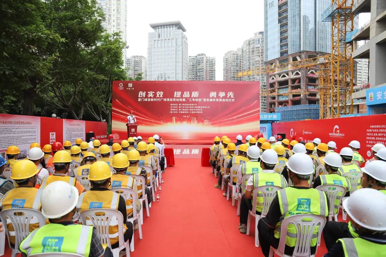 5月30日,廈門綠發(fā)新時代廣場項目舉辦勞動競賽、“三號聯(lián)創(chuàng)”暨安康杯競賽啟動儀式,吹響建設(shè)沖鋒號,朝著B塔樓百米目標全力沖刺。