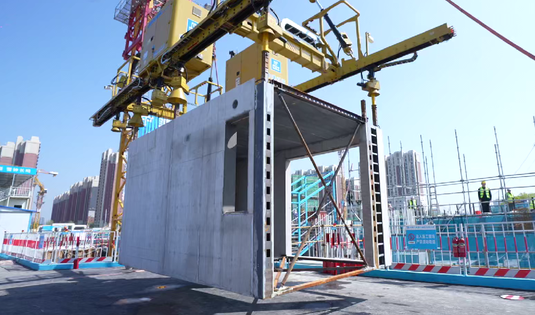 在濟(jì)南中建?大學(xué)里住宅項(xiàng)目現(xiàn)場(chǎng),一棟 53. 5 米高的建筑由 288 個(gè) “建筑積木” 拼裝而成,實(shí)現(xiàn)了 “12 分鐘一面墻、2 小時(shí)一間房” 的高效建造。