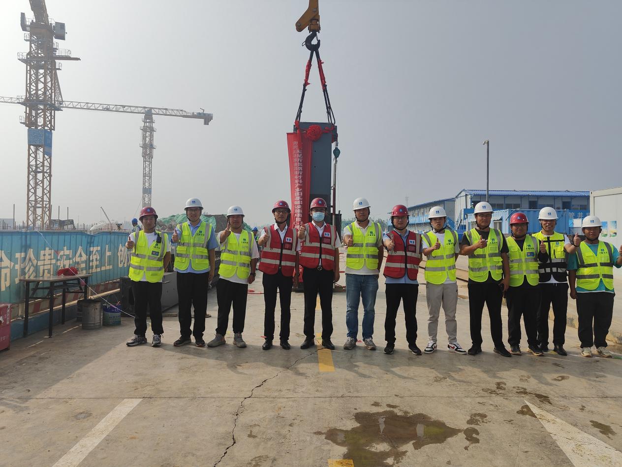 9月6日,隨著一根懸掛紅綢的鋼柱在塔司、信號工和安裝工人的配合下精準(zhǔn)安裝到預(yù)定位置,新能源新材料產(chǎn)業(yè)園基礎(chǔ)設(shè)施項(xiàng)目C-2地塊鋼結(jié)構(gòu)首吊圓滿完成。