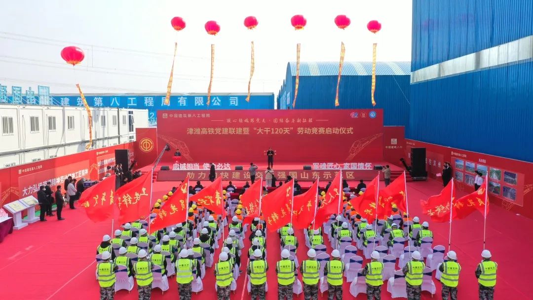 2月23日,津?yàn)H高鐵項(xiàng)目舉行黨建聯(lián)建暨“大干120天”勞動(dòng)競(jìng)賽啟動(dòng)儀式。 山東省總工會(huì)黨組副書(shū)記、副主席魏勇,生產(chǎn)保護(hù)部一級(jí)主任科員婁文華,濱州市人大常委會(huì)副主任、市總工會(huì)主席欒興剛,市總工會(huì)黨組書(shū)記、副主席李殿祥,市交通運(yùn)輸局黨組副書(shū)記、工會(huì)主席劉俊星,無(wú)棣縣委副書(shū)記、縣長(zhǎng)王濤等政府相關(guān)人員;雄安高鐵公司黨委副書(shū)記、紀(jì)委書(shū)記朱明,黨群工作部主任宮誼彬、天津指...