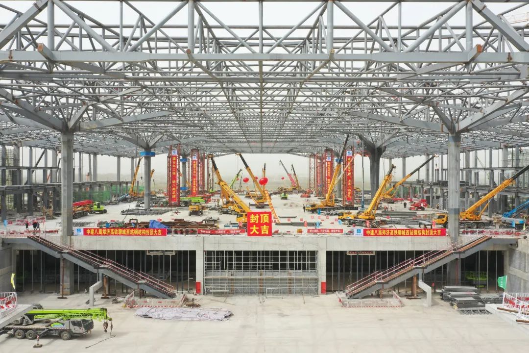 3月24日,隨著最后一塊大跨度屋蓋鋼桁架安裝完成,濟(jì)鄭高鐵站房項(xiàng)目聊城西站提前完成鋼結(jié)構(gòu)封頂,標(biāo)志著濟(jì)鄭高鐵山東段4座站房全部封頂,全面進(jìn)入裝飾裝修階段,年底通車指日可待!