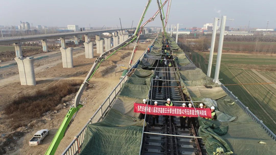 濟(jì)鄭高鐵山東段首個(gè)無(wú)砟道岔澆筑完成