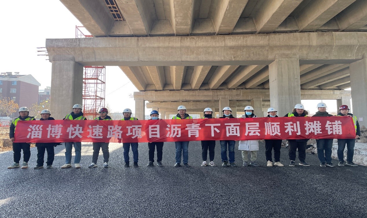 淄博市城市快速路網(wǎng)建設(shè)項(xiàng)目瀝青下面層順利攤鋪