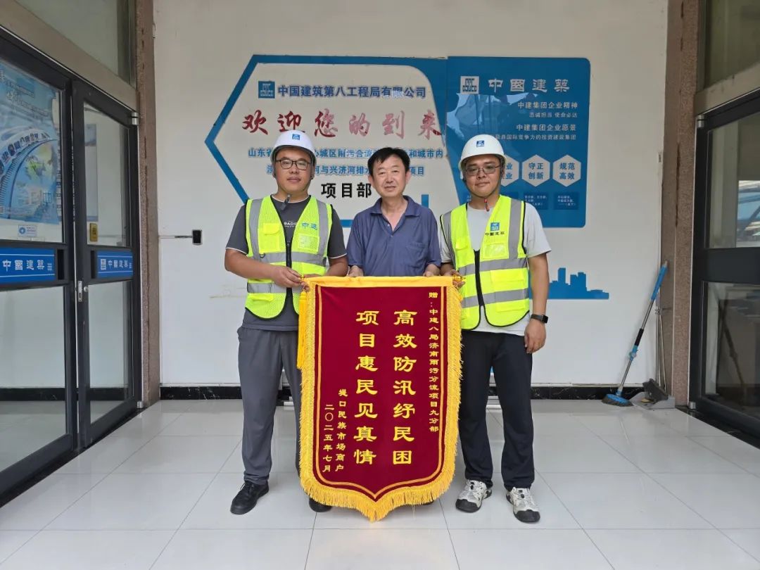 近日,濟南市連續(xù)遭遇強降雨,防汛形勢嚴峻。 中建八局濟南雨污分流項目(第九分部)積極響應(yīng)、迅速行動,有力保障市民出行和城市正常運轉(zhuǎn),贏得居民好評并獲贈錦旗。